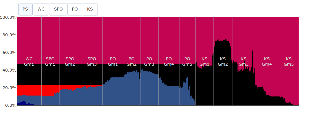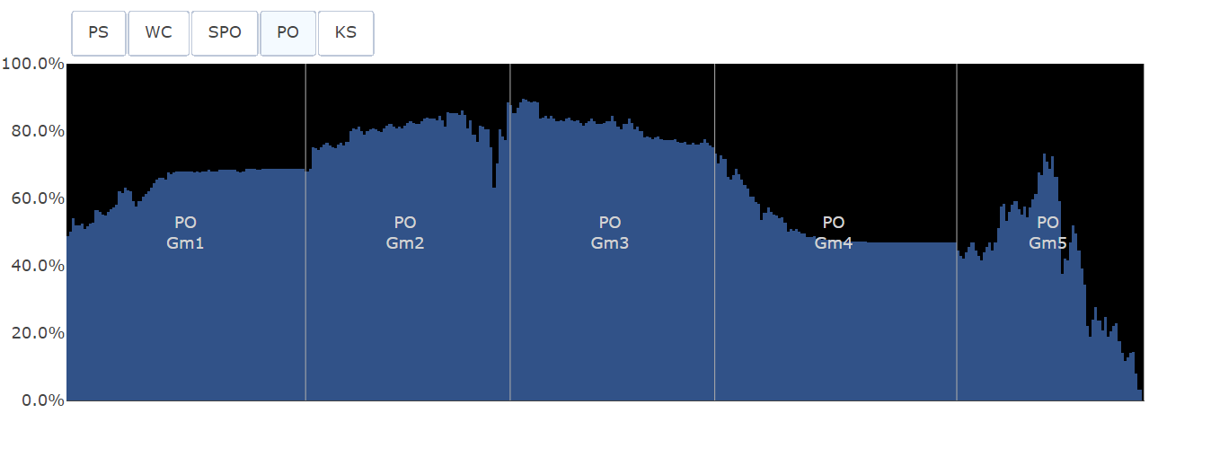 플레이오프에서는 강점이었던 KT의 필승조가 오히려 체력적 열세로 인해 약점이 되었고, LG의 타격이 점점 살아나면서 결국 5차전으로 시리즈가 끝나고 말았습니다. 특히나 내내 열세였던 2차전을 박동원의 역전 홈런으로 LG가 잡고, 역전이 난무하던 3차전을 기어코 LG가 잡아낸 것이 결정적이었던 걸로 보입니다. 참고로 한국시리즈의 경우 시리즈를 승리하면 우승인 관계로 cWPA와 시리즈 WPA가 같음을 알려 드립니다.