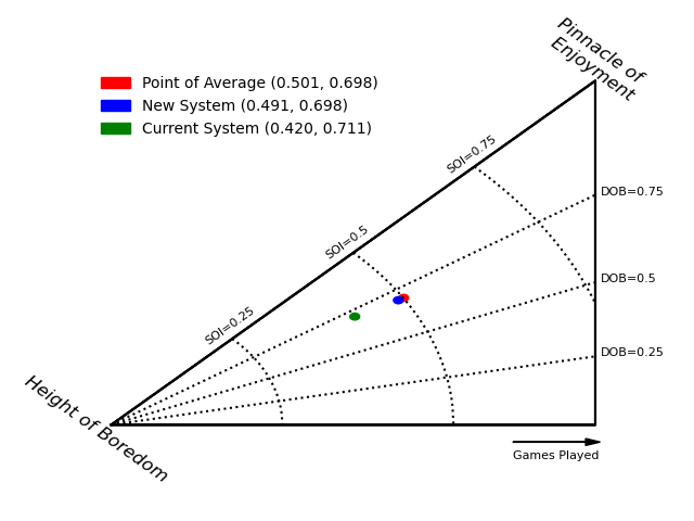 가장 중요한 한국시리즈 경기 양상은 어떻게 변화할까요? 지난 32번의 KS 평균 경기 수는 5.52경기, 무승부를 빼고 했을 경우 5.36경기입니다. 시뮬레이션 결과도 별로 다르지 않아서 현재 제도에서 시뮬레이션 된 평균 KS 경기 수는 5.51 경기입니다. 체력적인 격차를 상정하고 계산했기에 평균 경기 수가 당연히 적어지게 됩니다. 제안 변경안에서 KS 평균 경기 수는 5.78 경기로 기대 경기 숫자가 많이 늘어나게 됩니다. 그렇다면 제가 이전에 쓴 글(KBO 포스트시즌 - 한국시리즈는 과연 충분히 재밌는 시리즈였을까?)에서 제안한 관심 점수(Score of Interest, SOI)는 어떻게 될까요? 평균 0.420에서 평균 0.491로 변하게 됩니다. 평균적인 4선승제4선 승제 시리즈의 SOI 값은 0.501이라는 걸 감안한다면 꽤 평균치에 가까운 시리즈를 즐기게 될 것입니다. 50 시즌만 해도 SOI 0.42는 하위 1.6% 수준으로 아주 낮은 수준입니다. KS에서의 상위 시드 팀과 하위 시드 팀의 평균 경기 승률 차 등을 감안하면 사실상 현재 한국시리즈는 일반적인 4선 승제 시리즈가 아니라고 생각할 수 있을 겁니다. 그렇기에 PS 제도를 바꿈으로써 '한국시리즈'에서 일반적인 4선 승제 시리즈를 즐기게 되는 것도 팬들 입장에서 나쁘지 않은 변화일 거라고 생각합니다.